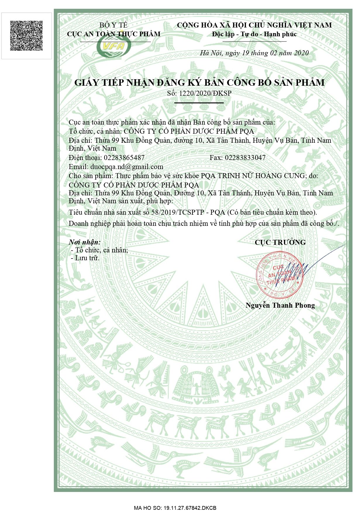 Giấy phép lưu hành: VD-32300-19.